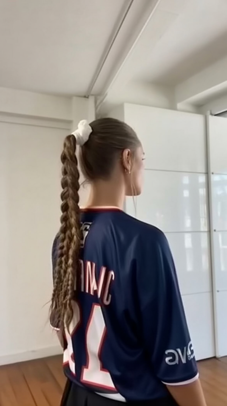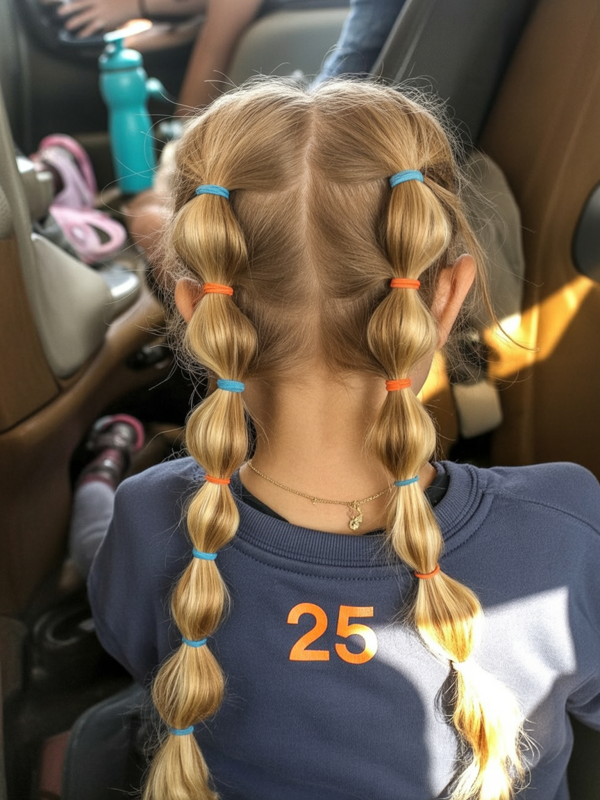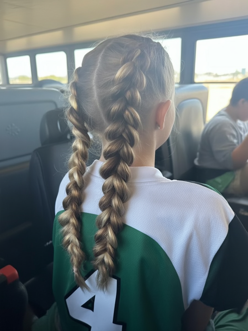 It’s a great pick for kids or teens, especially those with straight or fine hair that needs a little body. It’s easy to secure with elastics and stays playful for hours, whether it’s for practice or a full game day. Plus, it’s quick to recreate in the morning rush before school.