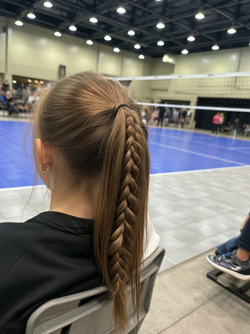 The perfect blend of sporty and classic—this French braided ponytail gives that effortless game-day look every cheerleader loves. It’s clean, easy to wear, and ideal for those fast-paced basketball or volleyball nights where you still want to look polished. This look is ideal for medium-length hair and can be sported by either player or cheerleader. The braids can withstand both practice sessions and look cute afterward. Just add a ribbon or team colors to the hair tie to customize it for your next game.