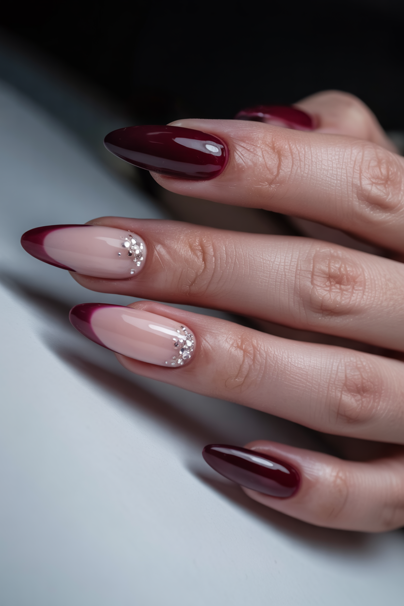 Nothing says “power move” like a glossy, cherry almond mani. This style is your older sister who knows what she is–bold, stylish and does not make an effort of it. It is the type of manicure that receives compliments both in wine bars and elevators.