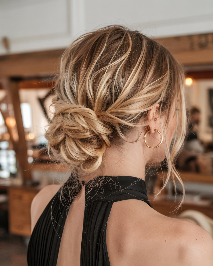 Perfect for fine to medium hair, this hairstyle solution gives volume where it matters while being very wearable at the same time. If you’re someone who loves wedding hairstyles or work hairstyles that go from simple to glamorous with ease, opt for this one—it’s sure to please! “Lightly curl the front sections, twist the back sections loosely, and secure with pins, finishing with flexible spray—easy, feminine, and great for wedding guests or bridesmaid hairstyles.”
