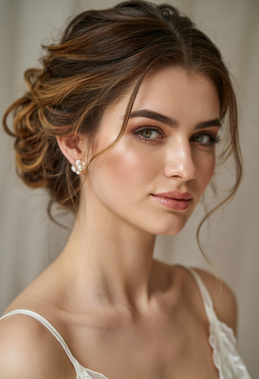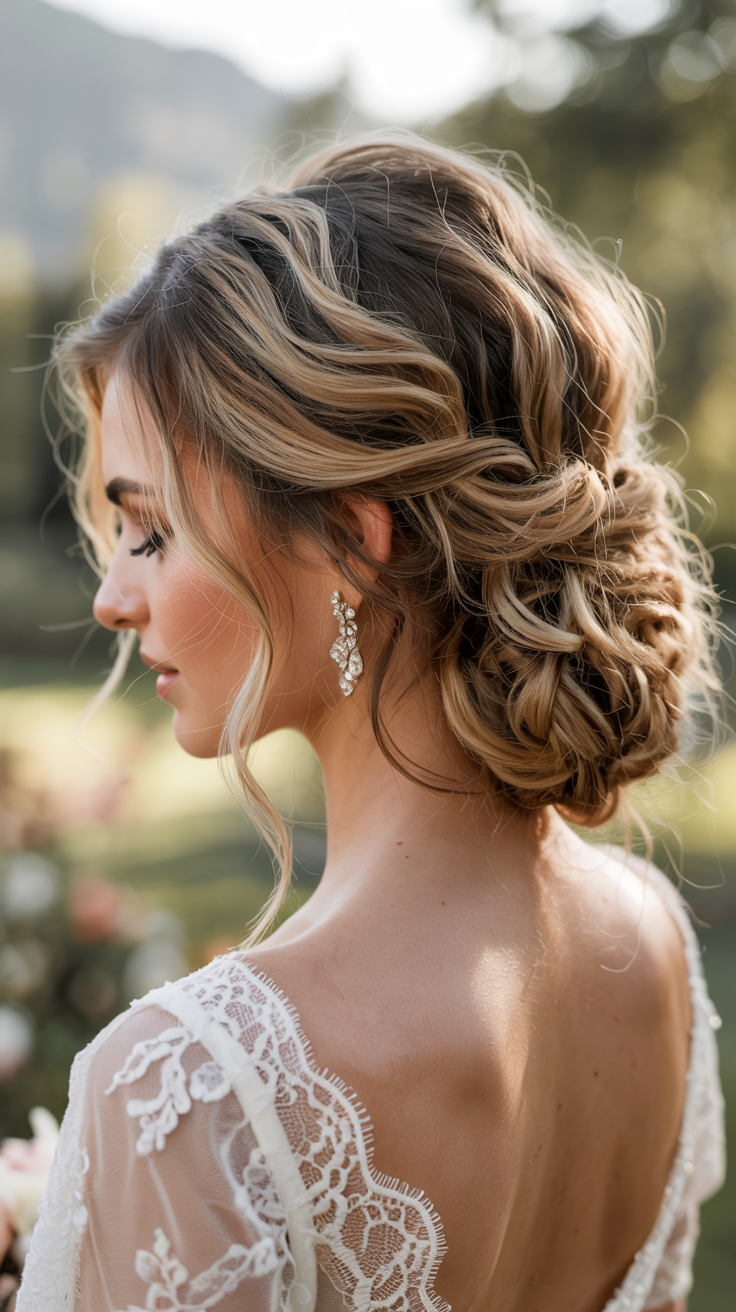 3. Textured Bridal-Inspired Updo With Soft Tendrils