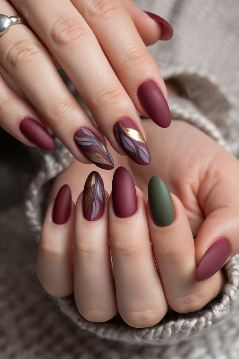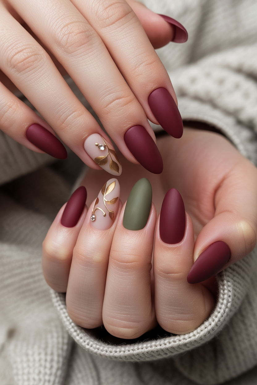 22. Burgundy Matte with Leaf Art and Olive Accent
