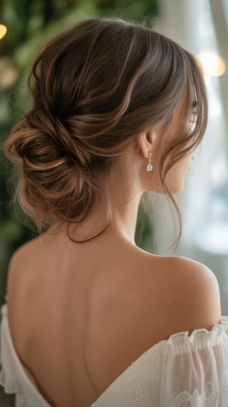 5. Loose Textured Bun with Whimsical Strands.