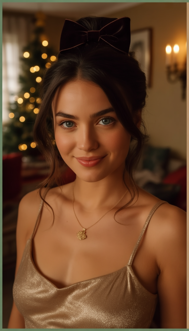 There is something very festive about a velvet bow perfectly placed on softly tousled hair. It exhales sophistication with a cute side-just the hairstyle that would fit in nicely at a Christmas dinner or an office party. It walks that very fine line between polished and approachable, making you look effortlessly put-together while also exuding warmth and confidence.