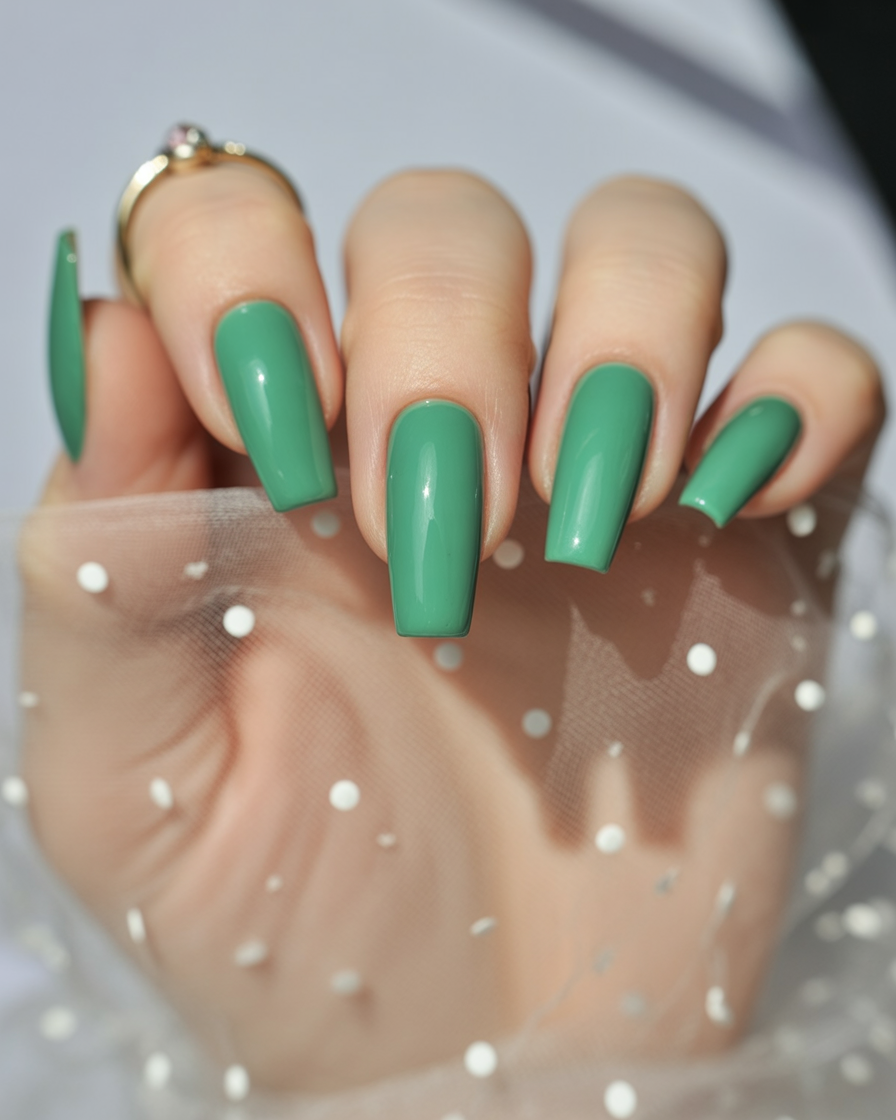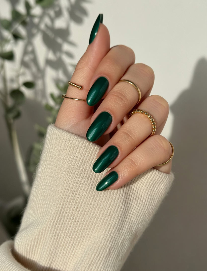 A clean and straightforward dark green nail color has such timeless appeal—like that pair of perfect leather ankle boots or your trusty fall trench coat. Great for women who like to keep things straightforward yet sleek. This is such an easy style to wear every day without much maintenance—just what low-maintenance queens are made of. It’s a popular color option that works well during fall and winter seasons. This shade combines effortlessly with gold accessories and berry-stained lips.
