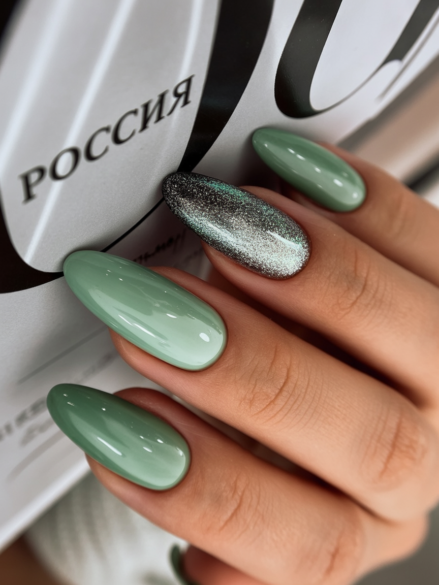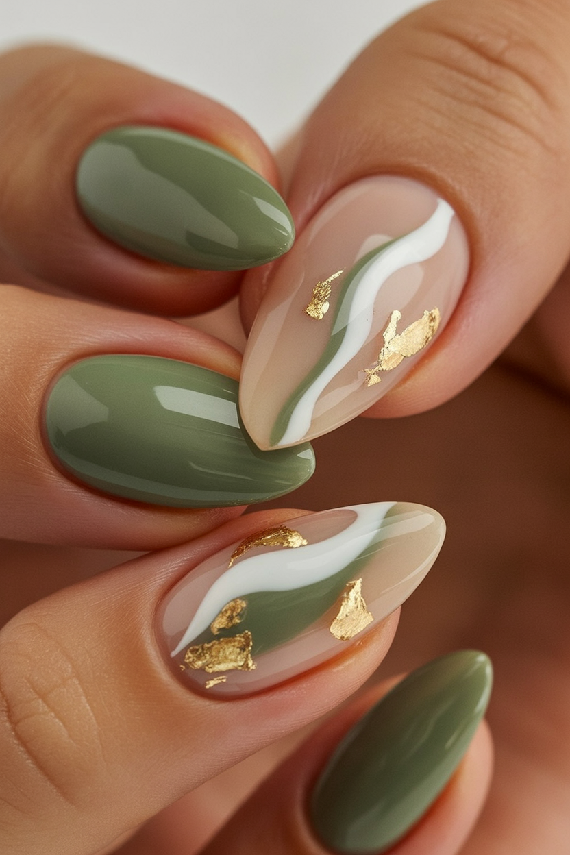 If botanical art had its big nail trend moment, this look would be on every woman’s list. The pastel olive green and white marble mixed with gold foil accents result in such an otherworldly effect on the nails. These are perfect for medium to long almond nails and work particularly well with gel to get that seamless look. The marble finishes add visual interest without losing that soft feminine touch. These are great if you are looking to get almond nail art that is 2026 perfect. Whether it’s all about the sparkle, the clean lines, or that hint of natural glam—these jade nails are your ticket to feeling sleek, on-point, and effortlessly confident. In fact, sometimes all it takes is the perfect gel manicure to feel like you’ve had the makeover of a lifetime.