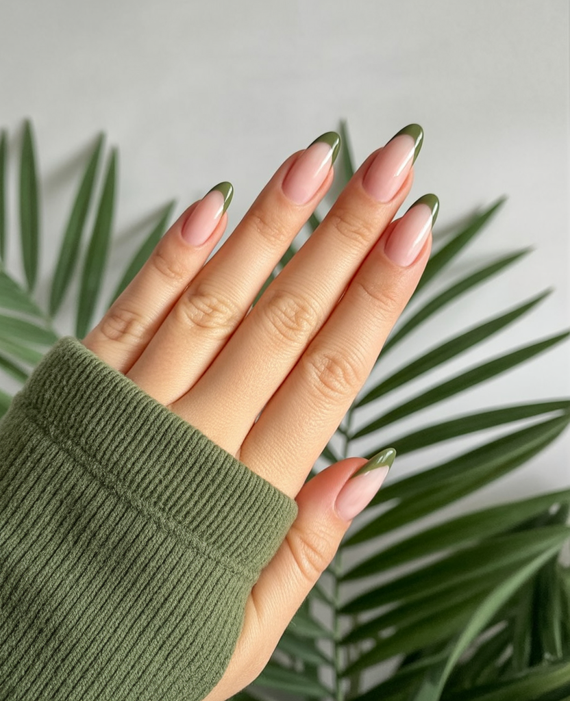 A breath of fresh air, this soft French tip nail art featuring an olive color palette is subtle and sleek. It has that effortlessly cool look that reminds one of one’s best-liked cashmere sweaters and one’s best-loved pair of jeans after many wearings.
