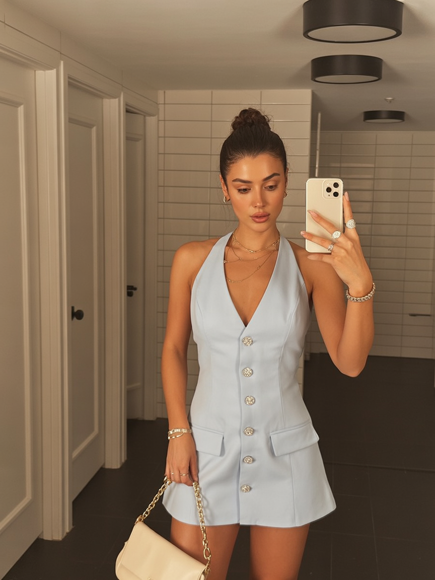 When paired with bold silhouettes like halter mini dresses or aesthetic party pieces, the attitude of this cut really shines. It gives off a cool, self-assured energy that’s perfect for stepping into a room with purpose—graceful, modern, and undeniably composed.