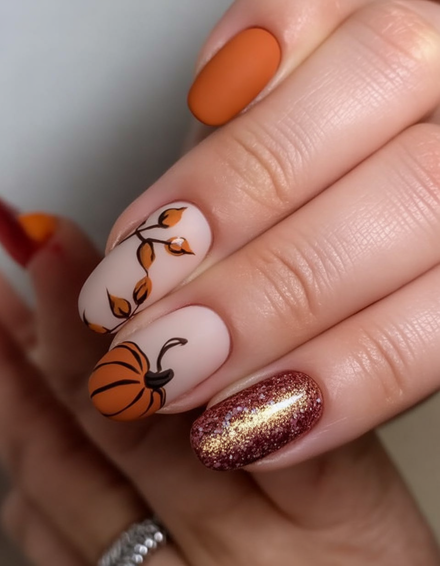 They are autumn fall nails that can suit a lady that is interested in some seasonal nails that are not too traditional. The velvety appearance is created by the matte finish and it goes perfectly with soft knits and moody autumn hues.