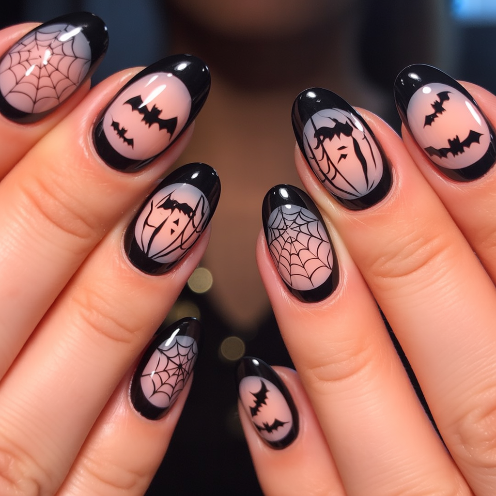 This style is ideal when the almond shaped nails are used so that the look is not too heavy or serious. Ideal for anyone who wants a no-fuss statement design—just pop on a top coat for shine and you’re set for spooky season all week long.