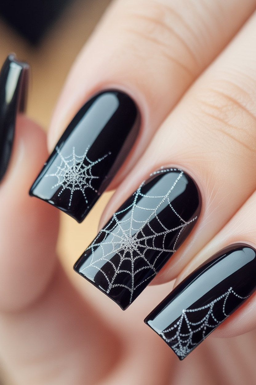 It is somehow hypnotic the way it is simple and sleek with the gloss black and fine metallic spider web lines. It’s spooky minimalism done right—sharp, clean, and undeniably sophisticated. Seriously, like the little black dress of Halloween: classic but with a touch of something edgy.