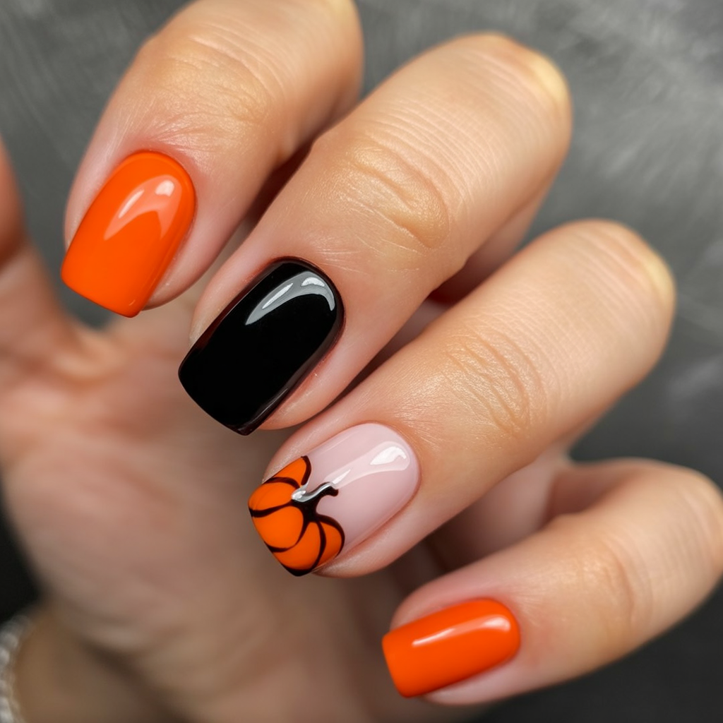If you’re the type who loves a touch of Halloween flair without cartoon characters or clichés, this design is for you. It’s stylish enough for everyday wear and perfect for short, simple nail lengths with attitude.