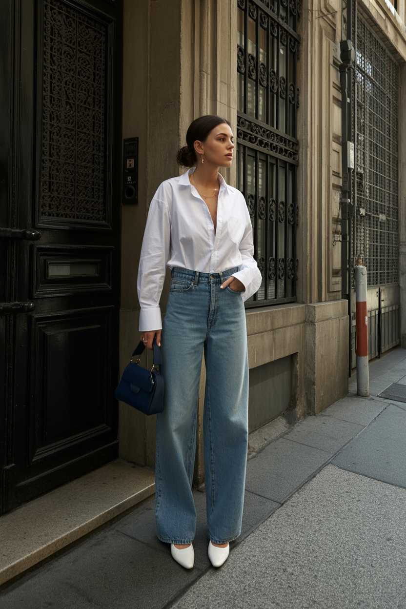 This outfit feels familiar in a great way, a favorite combo you know always works. A timeless and confidence-inspiring look with wide-leg jeans and a crisp shirt. Polished, relaxed, and not formal or undressed. Perfect style for every day for women who want dependable outfits. The jeans are flattering on plus-size and mid-size women, and the shirt has great structure for work or day events. It is basic, unmatched, and super adaptable. Great style is not the pursuit of trends; it is the discovering of jeans and shirts that allow you to be comfortable and yourself. Jeans are the light of every stage of life, and spring 2026 is the next example of how versatile they are. From baddie styles to more sophisticated or simple and casual, you can choose what represents you best. Load your closet with those trusty denim picks, and allow the season to showcase your confidence and self-expression.