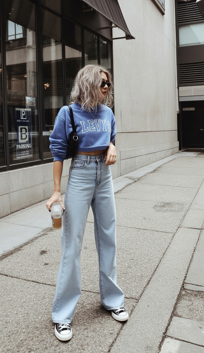 13. Cropped Sweatshirt and Denim for Easy Casual Styles
