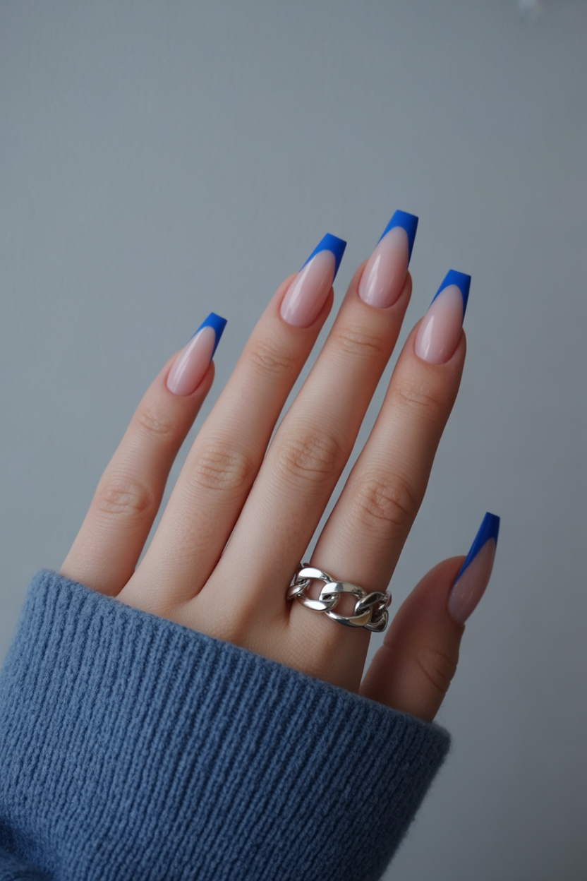 9. Bold Blue Coffin Tips with a Chic Edge