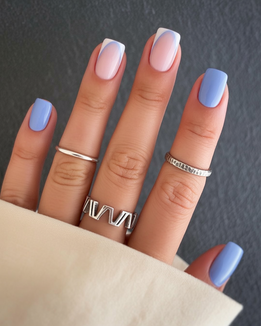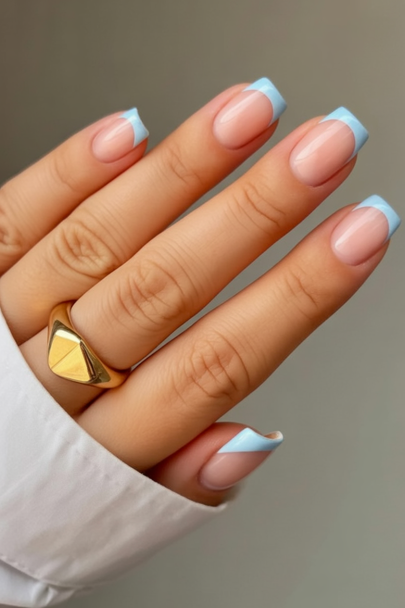 6. Pale Blue French Fade with a Soft Touch