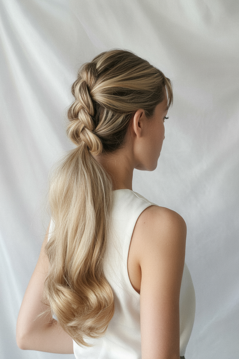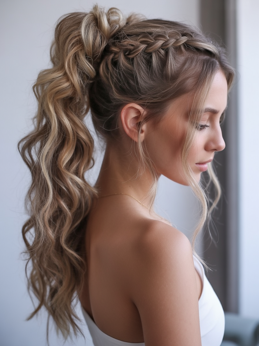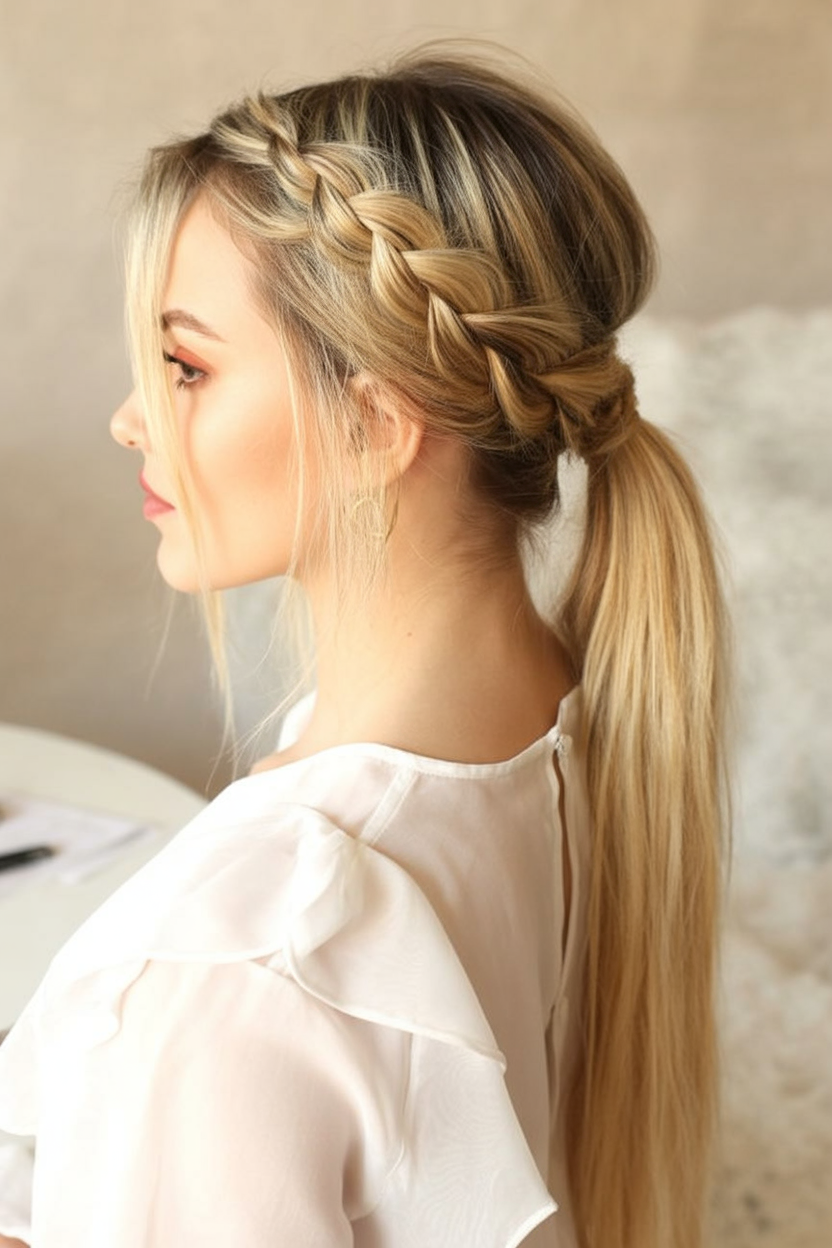 This style of braid into pony is the right merge of structure and flow. The side braid made of sculpting creates an addition of beautiful framework whereas the presence of pony-tail makes it softening the appearance and very easy to make it move. It is the type of style that is intricate-looking yet extremely wearable.
