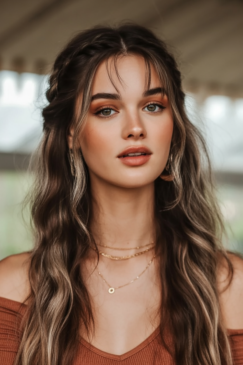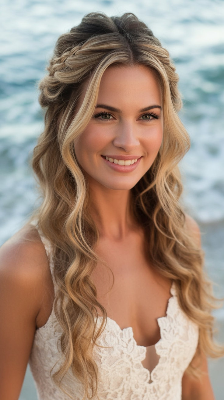 The style involves all the fairy-tale vibes with a braided halo that is not childishly sweet. These waves are like the wind itself making you appear to have that delicate, king-like quality especially when you want to have your hair talk most magically.