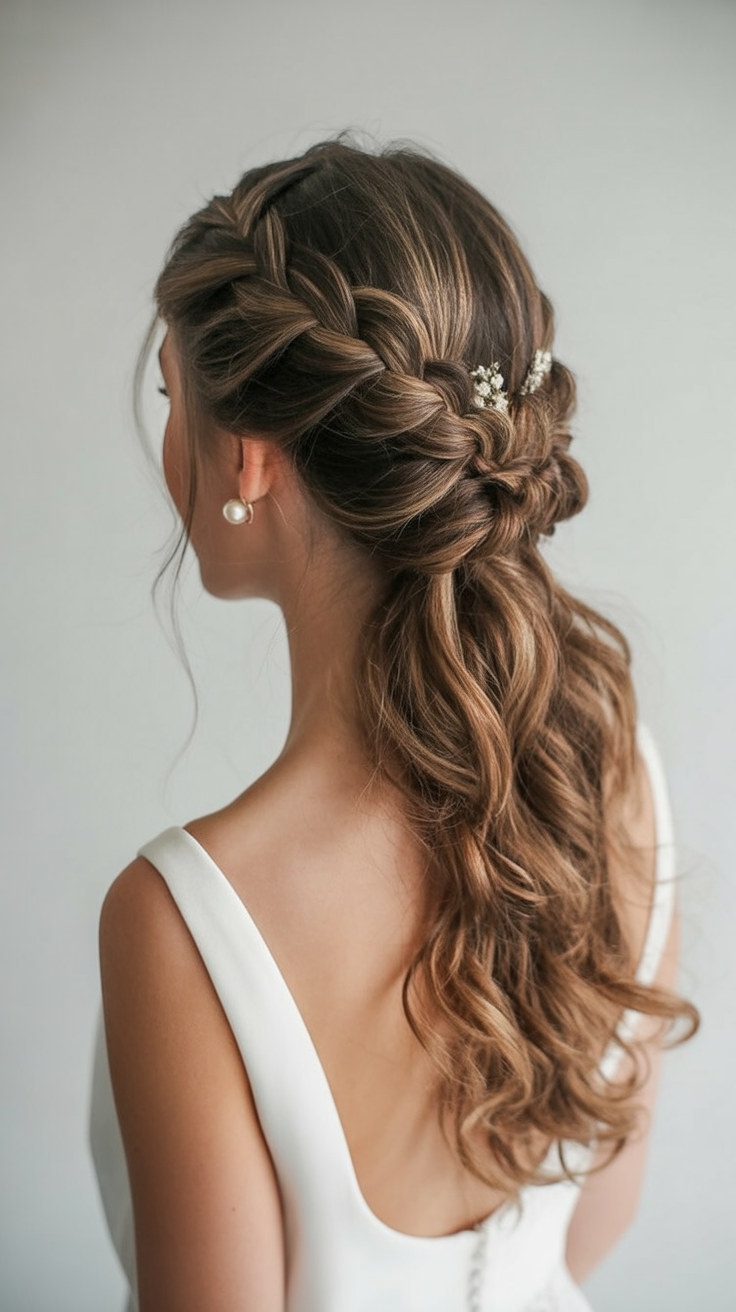 It seems a romantic poem in the form of braid-a soft intricate vintage look is there. It features a fancy side braid that folds into a pale braided ponytail and preference with exquisite pearl stylish pins, so it is understated glamour.