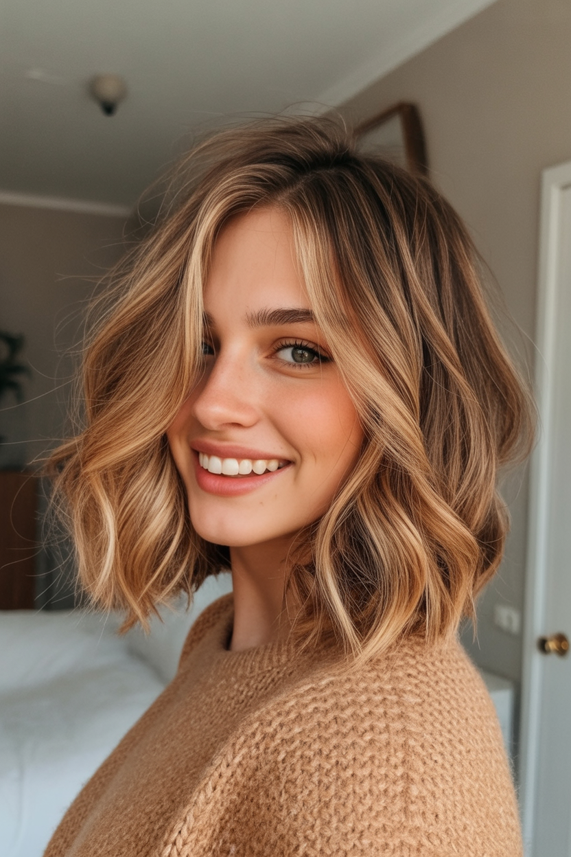 This cut flatters oval and heart-shaped faces best, especially for women with fine or medium hair who love movement without fuss. A quick scrunch with sea salt spray brings out the texture, while a side part adds instant volume. It’s low-maintenance, versatile, and endlessly flattering for any season.