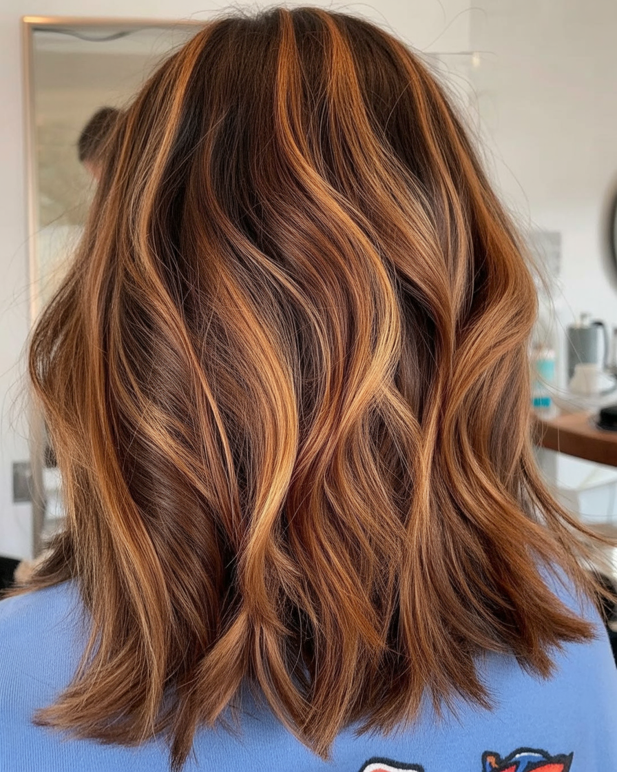 23. Chestnut and Honey Caramel Mid-Length Cut