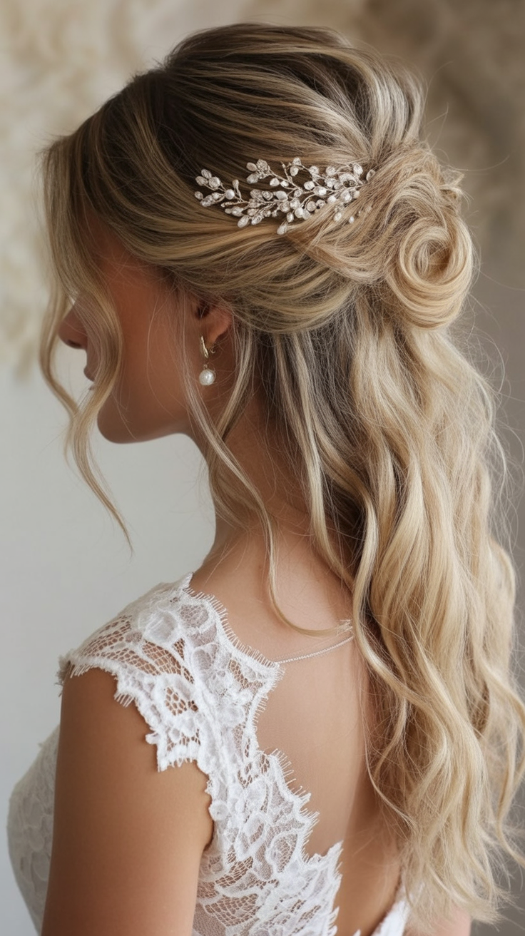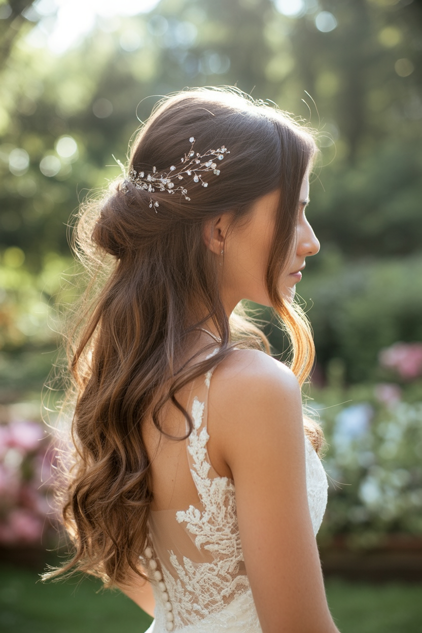 24. Half Up with Crystal Hairpiece