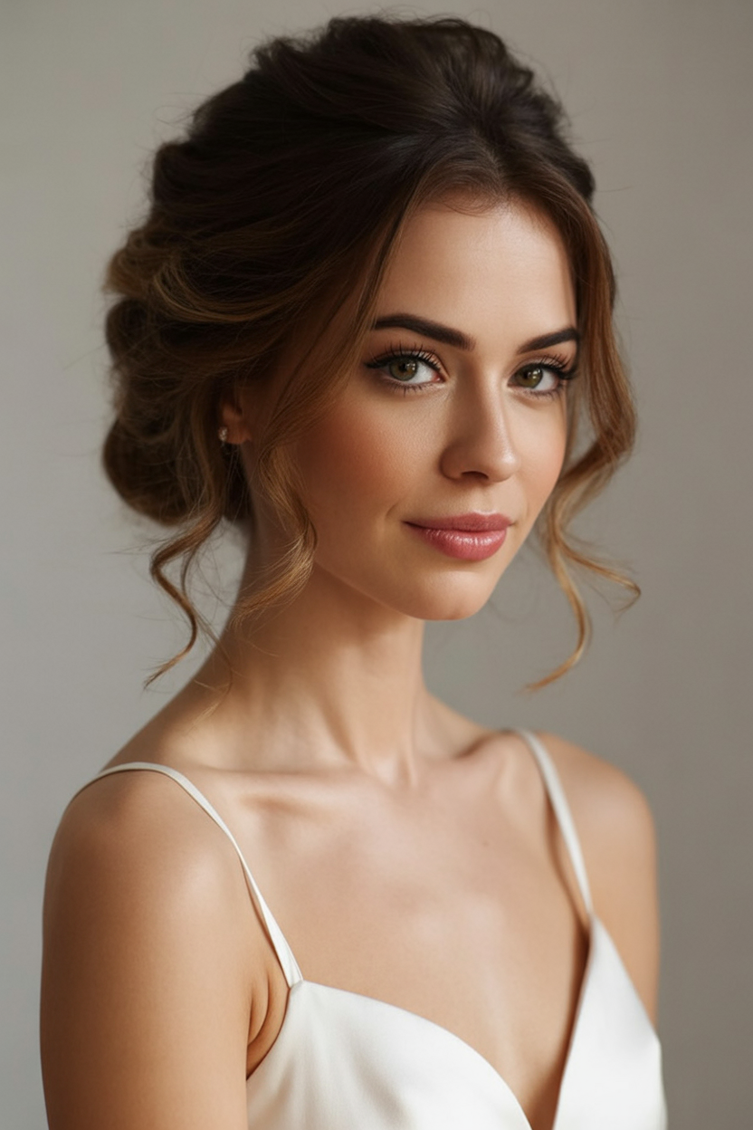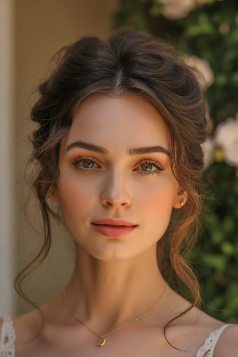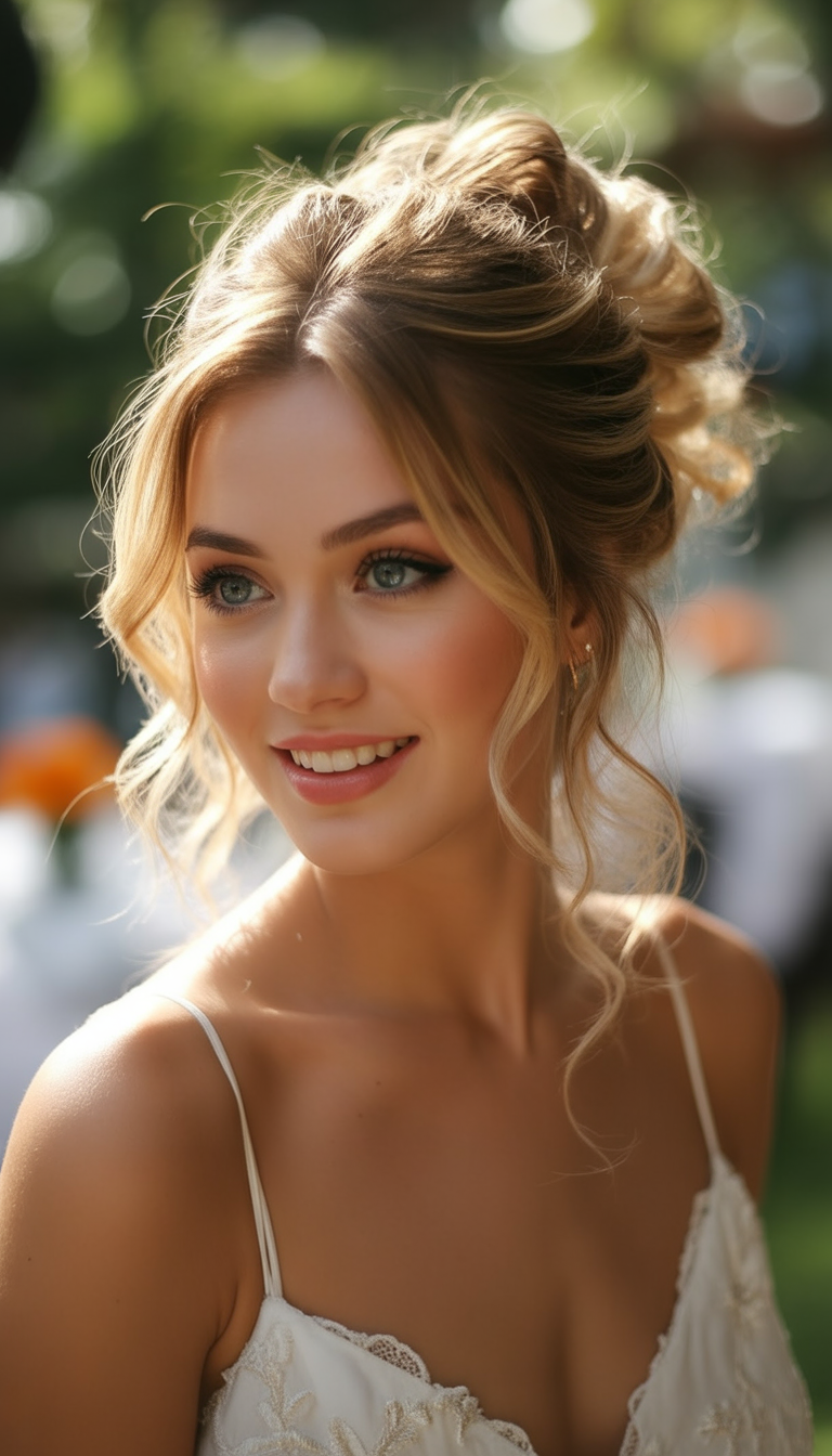 2. Softly Tousled Updo with Face-Framing Strands