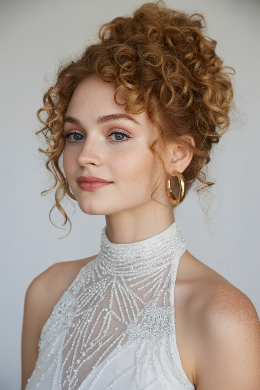5. Curly High Updo with Bounce