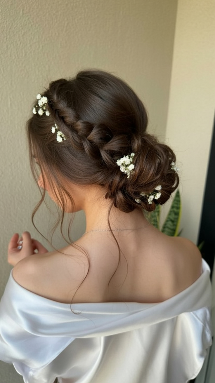 8. Braided Bun with Baby’s Breath