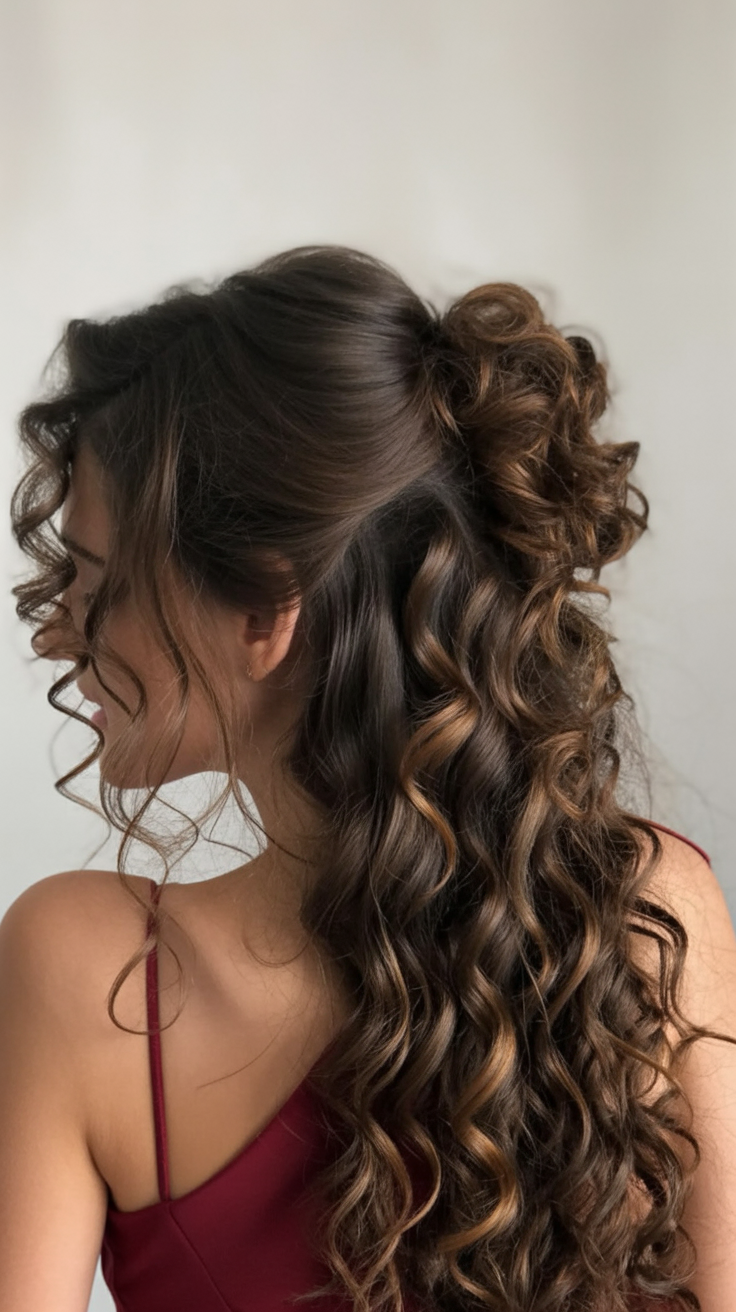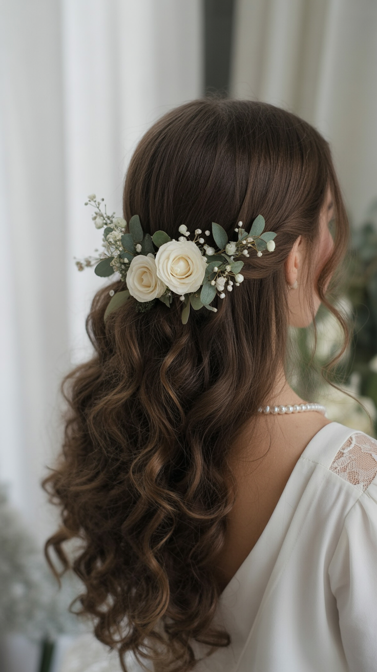 12. Floral Half Up with Cascading Curls