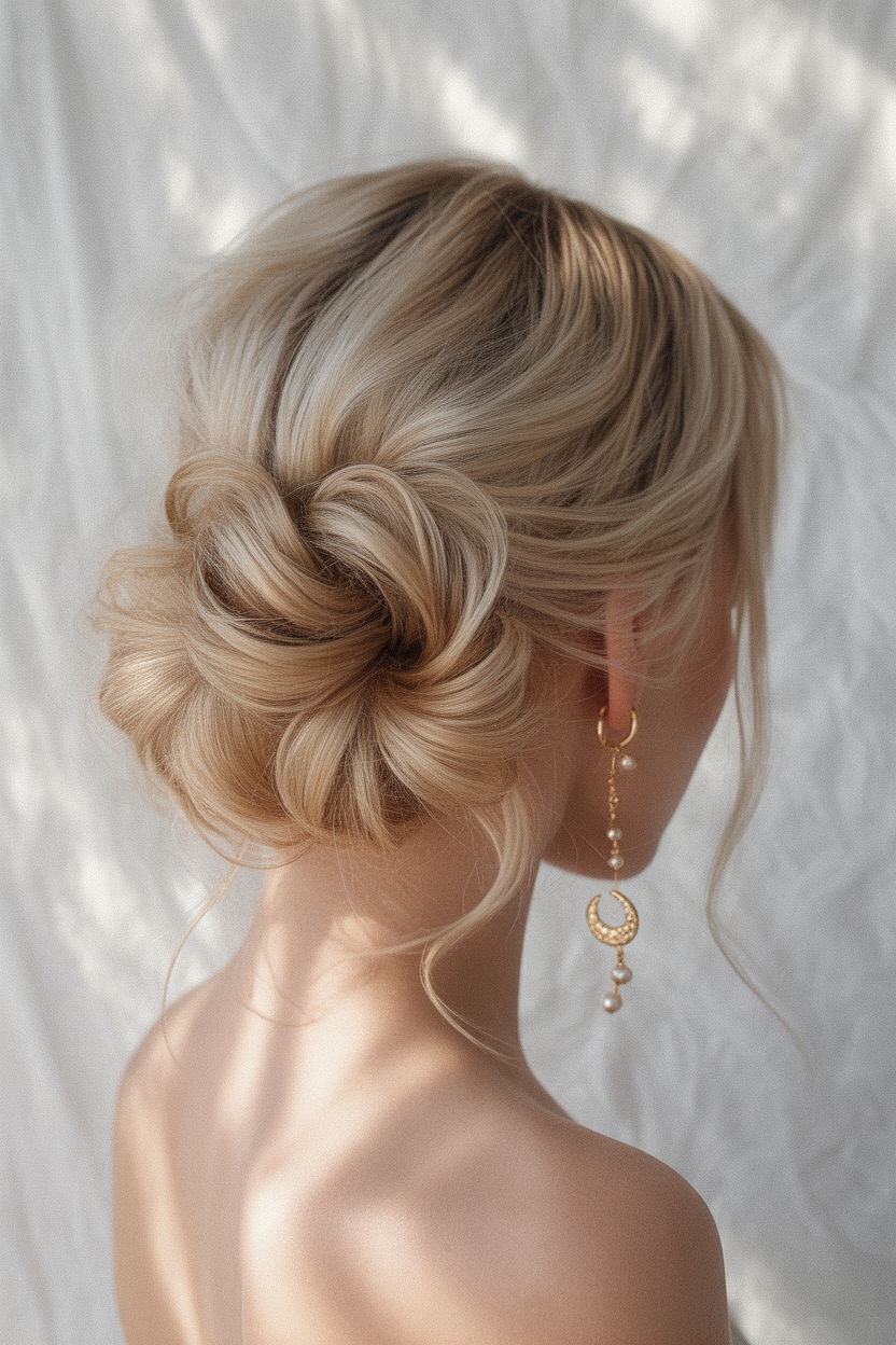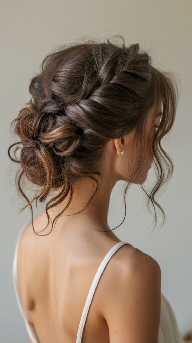 What makes this updo special is its adaptability. It compliments mid lengths and long lengths of hair especially when it is done with some texture. Due to its gently messed up finish, it is exactly in alignment with the 2025 trends that embrace natural beauty and movement. Put on some classy earrings or a light veil and you will have a beautifully chic but not over the top styling.