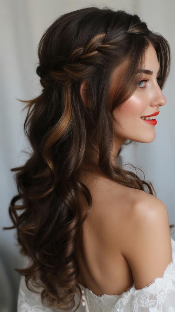 9. Flowing Curls with Subtle Braided Crown
