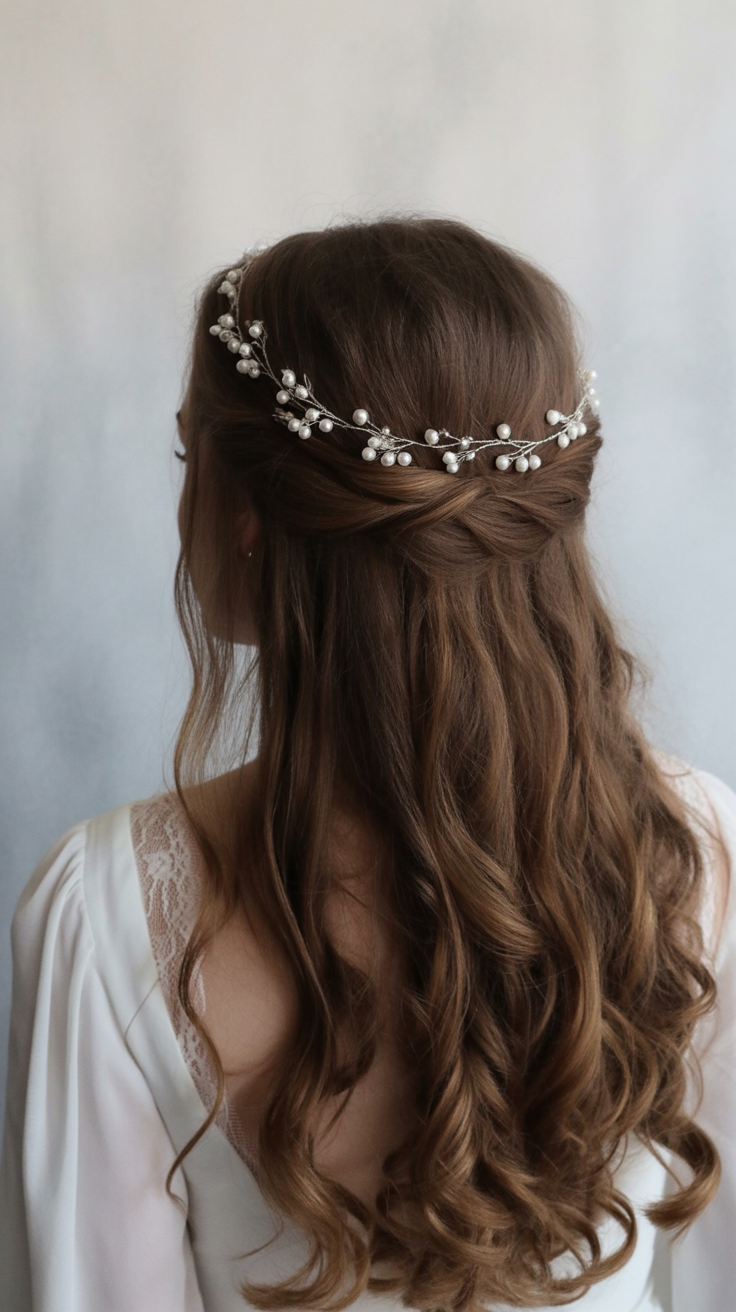19. Romantic Half Up with Pearl Crown