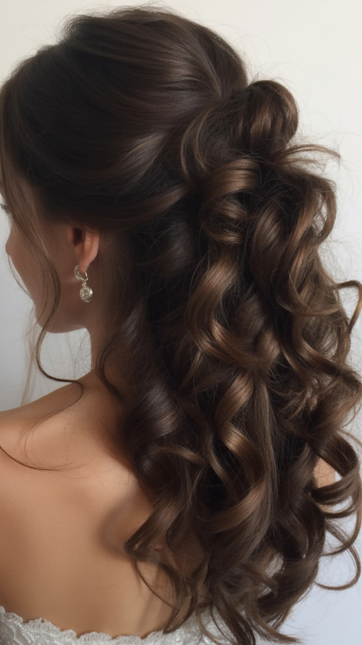 It is perfect on thick-haired brides or a girl who likes to wear long hair with volume because it captures the latest trends. The additional height in the crown lengthens the face and it works ideally in round or the heart-shaped face. To style, curl up in small chunks so they curl in distinct spirals, then just loosen up with your fingers to give that luxurious soft style. It is one that will stand its shape, first dance to final toast.