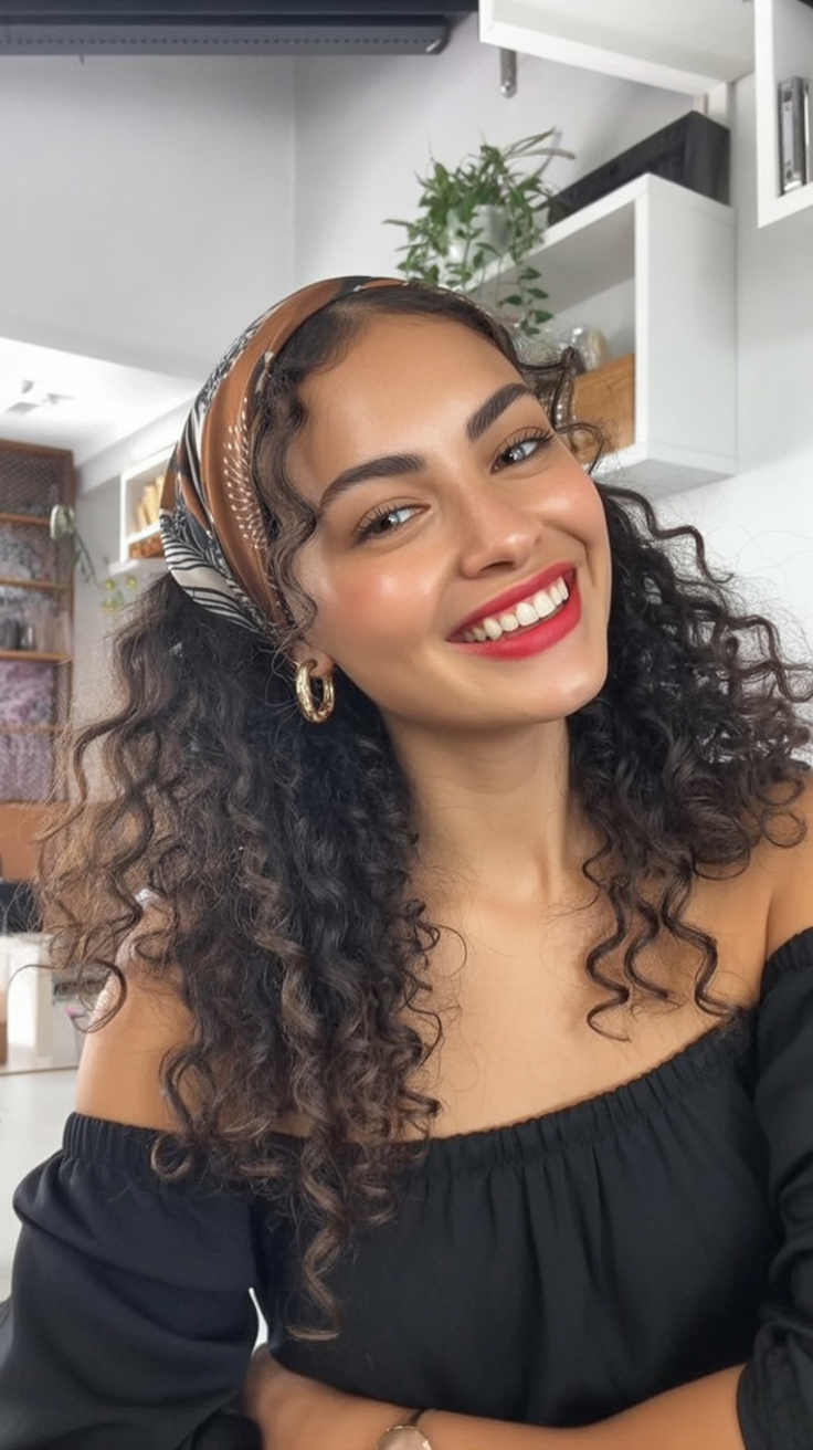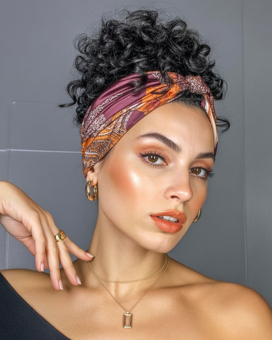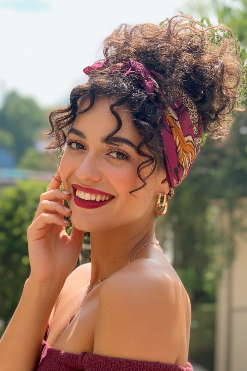 This is the style that suits curly hair so much as it depends entirely on natural volume. The bandana is a functional decoration because it aids in keeping shape amidst windy days as well. Wear it with statement earrings at night time or a casual linen shirt on a weekend walk. The trick is to leave in conditions to keep the curls moisturized in order to remain shiny and frizz-free.