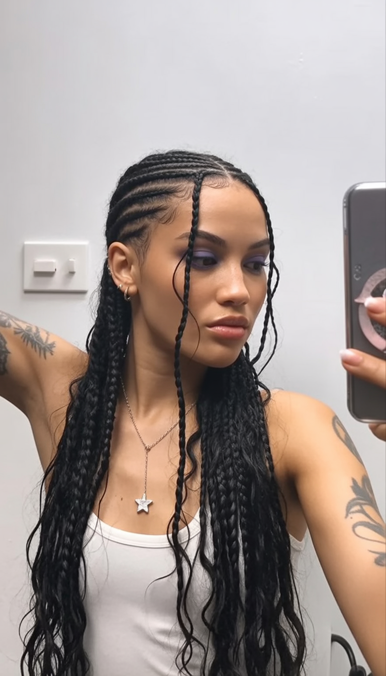 The medium length or long length is a stellar choice and can be used on either textured or relaxed styles of hair. The cornrow will be sure to stand out anywhere and the cuffs can be completely adjusted to your mood or wardrobe. It is defensive, innovative, and ready to wear this winter 2025.