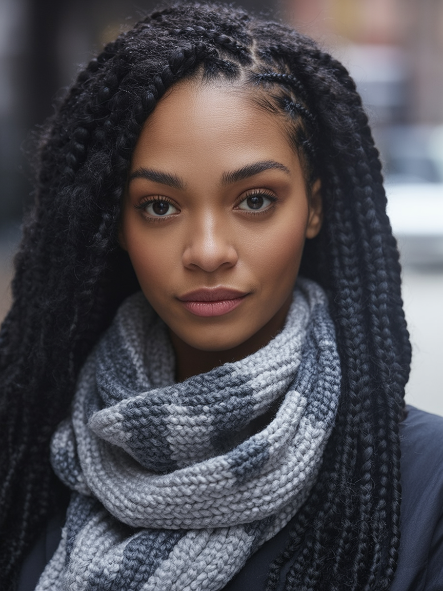 Nothing like jumbo braids can make one feel that warm, cozy feeling in the cold months. This appearance is casual and authoritative. It is the best match with long chunky scarves, oversized sweaters, and that yes, I have a date and I have a schedule kind of energy.
