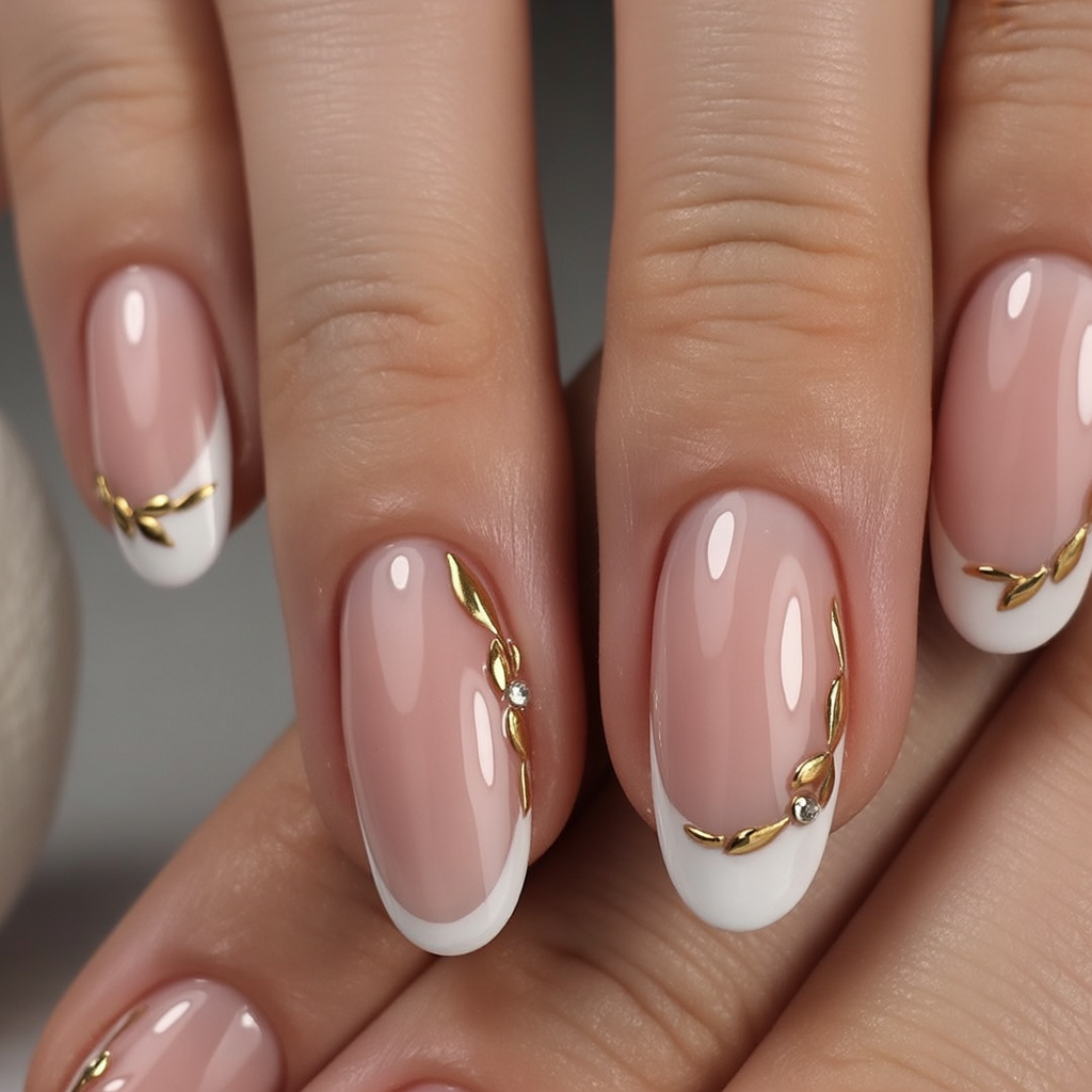 A dwelling touch of nature is added to this classic French manicure with the fancy laurel branch details. The impact is hard yet artsy -a piece of art on your fingers. It is the sort of mani that makes you inject more ambiance into your latte sipping and enjoy the elegance of the time.