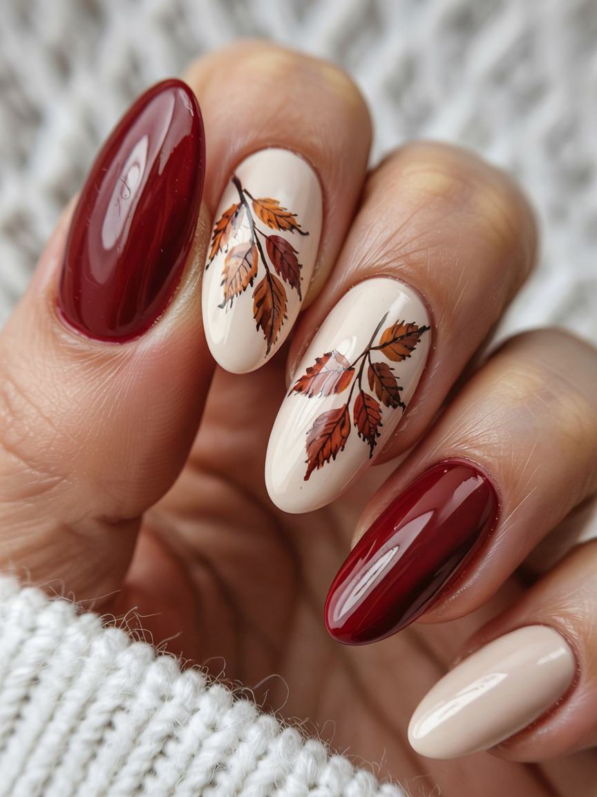 10. Creamy Autumn Leaves with Deep Red Tips