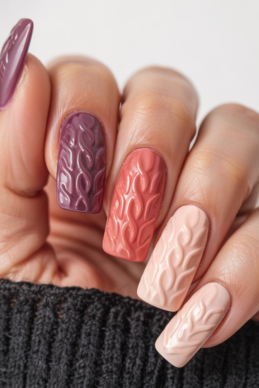 23. Cozy Sweater Texture Nails in Fall Shades