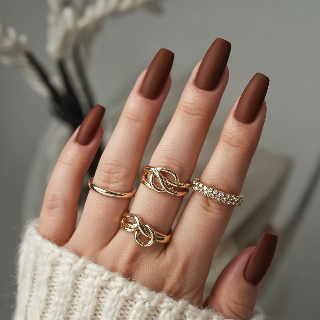 11. Matte Mocha Nails with Clean Fall Vibes