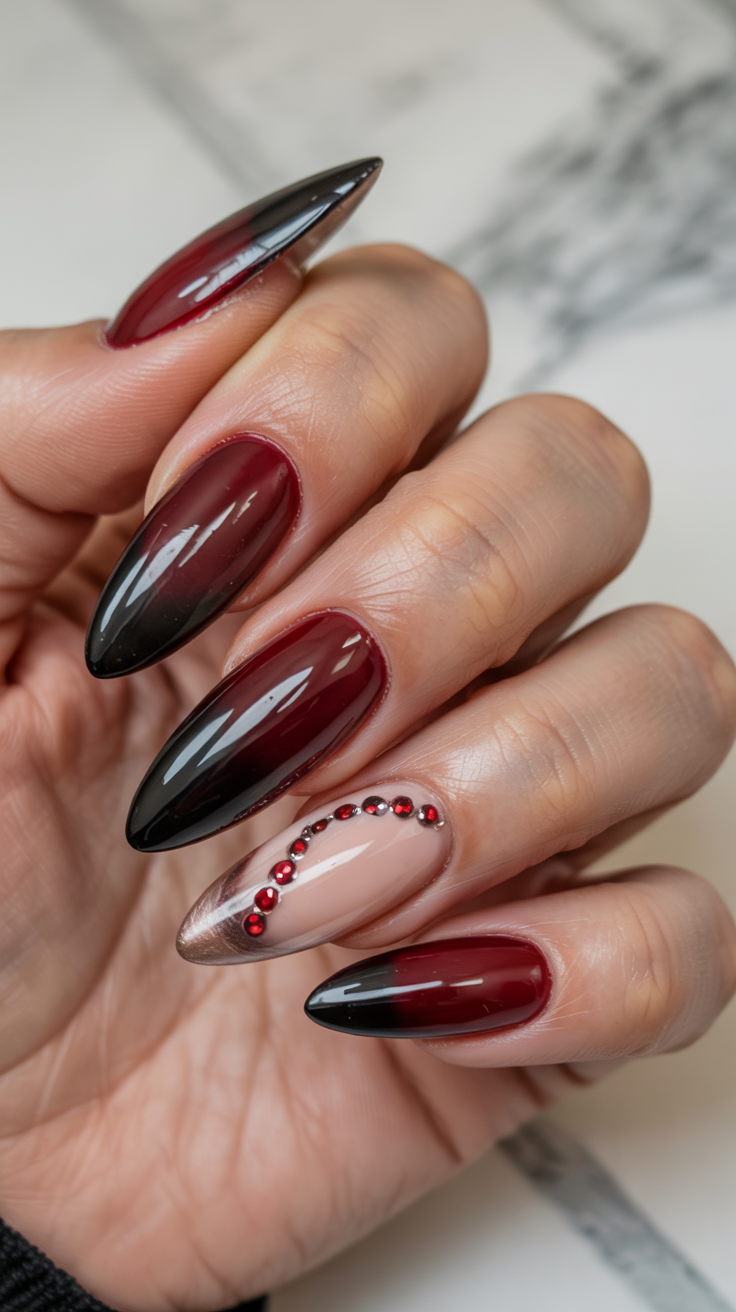 13. Burgundy and Black Fade with Red Gems