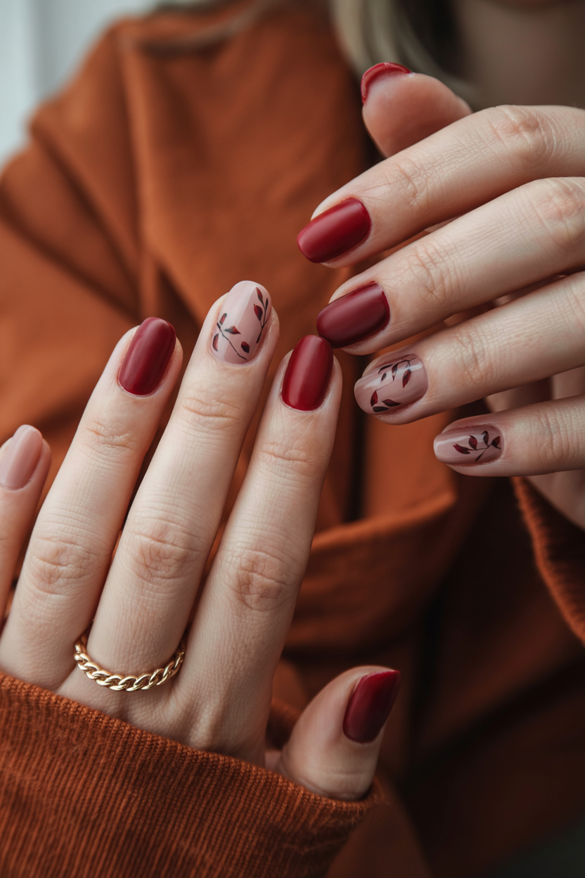 14. Soft Autumn Reds with Leafy Accents