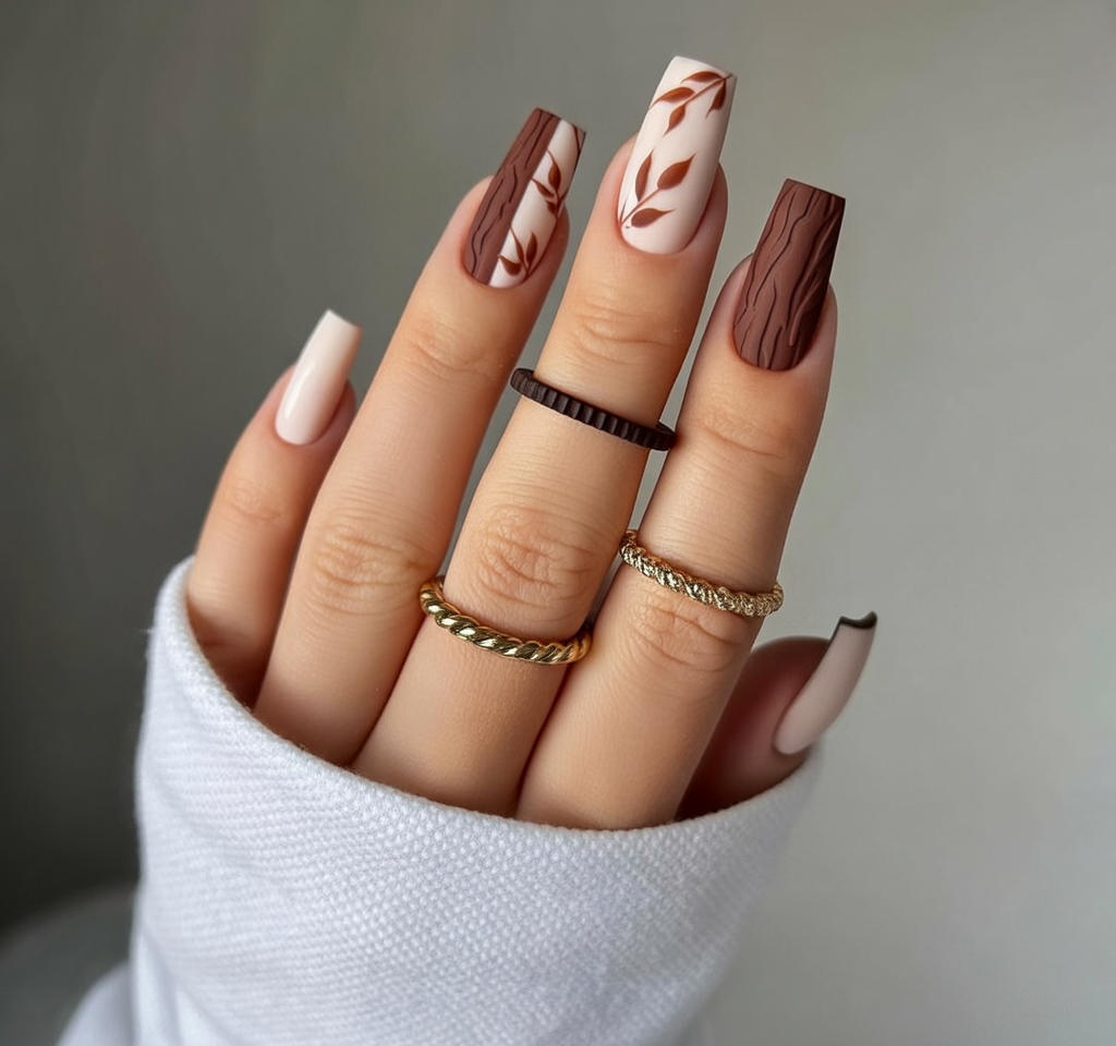 1. Warm Cocoa Texture & Leafy Accents