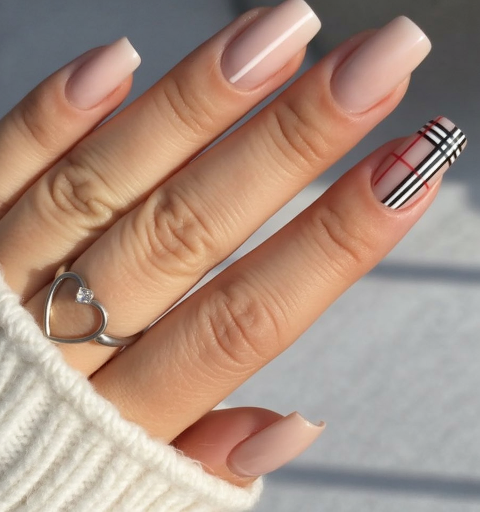 This set whispers rather than shouts. A subtle blush base will give the impression of taking a warm step elegance, with the plaid accented nail will give the appearance a little kick of design short style, giving out classic Burberry vibes. It’s preppy, pretty, and perfect for anyone who likes their fall nails minimal but memorable.