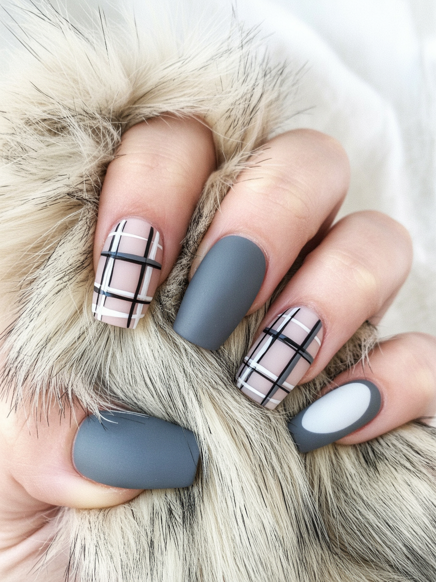 17. Matte Slate & Plaid Elegance