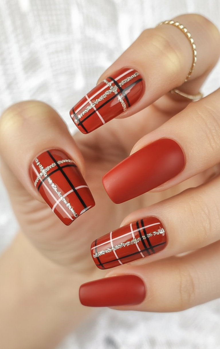 18. Tartan Glam in Red & Glitter