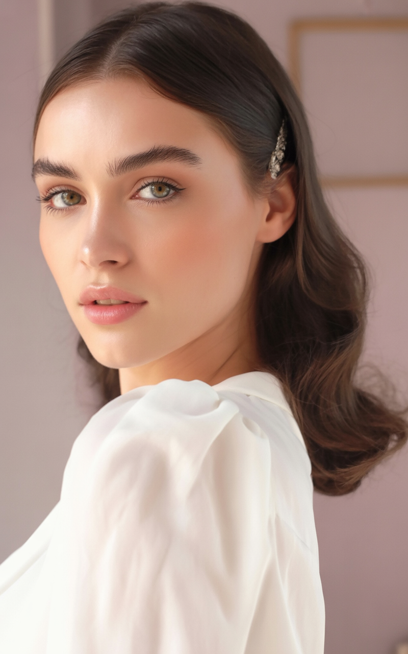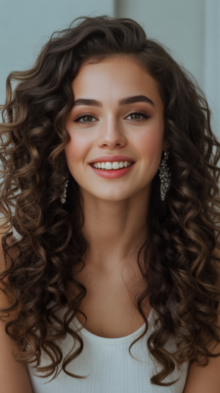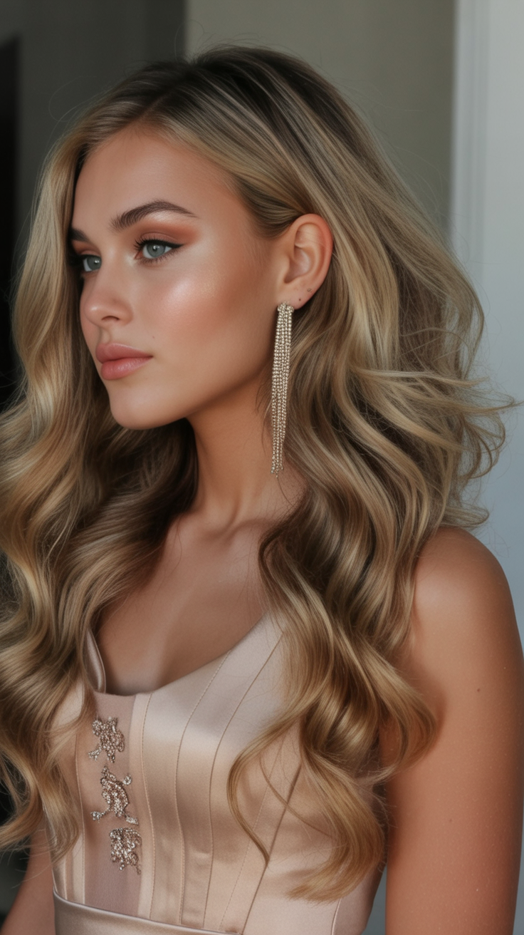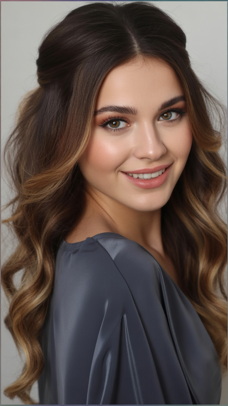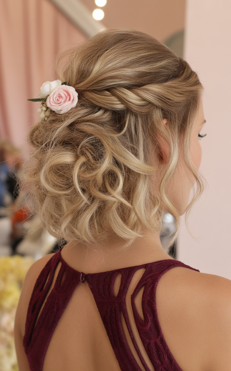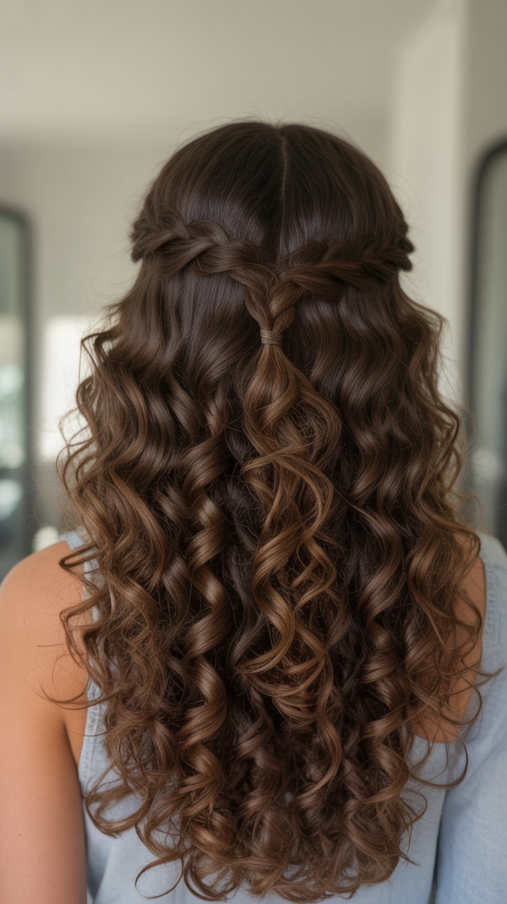 This style is the epitome of effortless elegance. With soft, voluminous curls flowing down and a delicate twist pulling the sides back, it’s the kind of hair that looks good from every angle — romantic, relaxed, and very wearable.