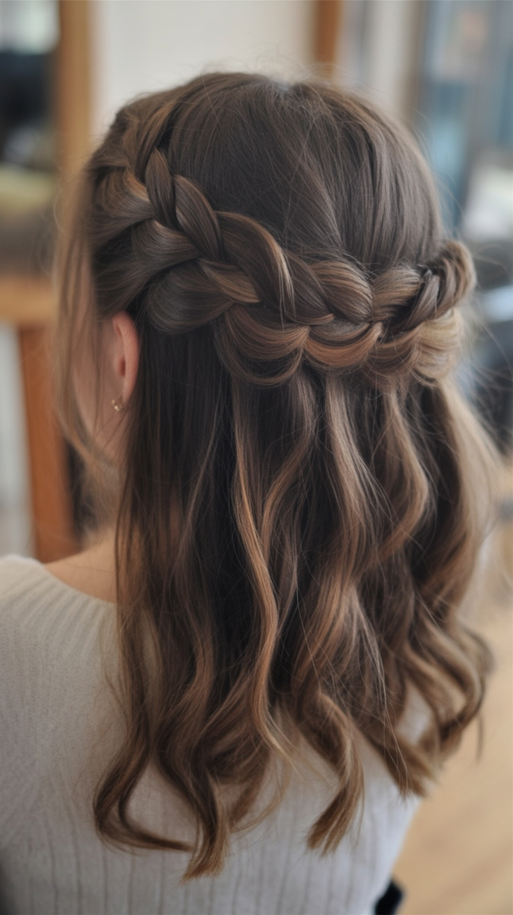 This crown braid speaks of sweet-fields of wild flower and sun lit afternoons. It is flamboyant and light-minded yet with the touch of organization that makes it stylish and posh. The waterfalls add softness to the entire appearance that seems extremely feminine.