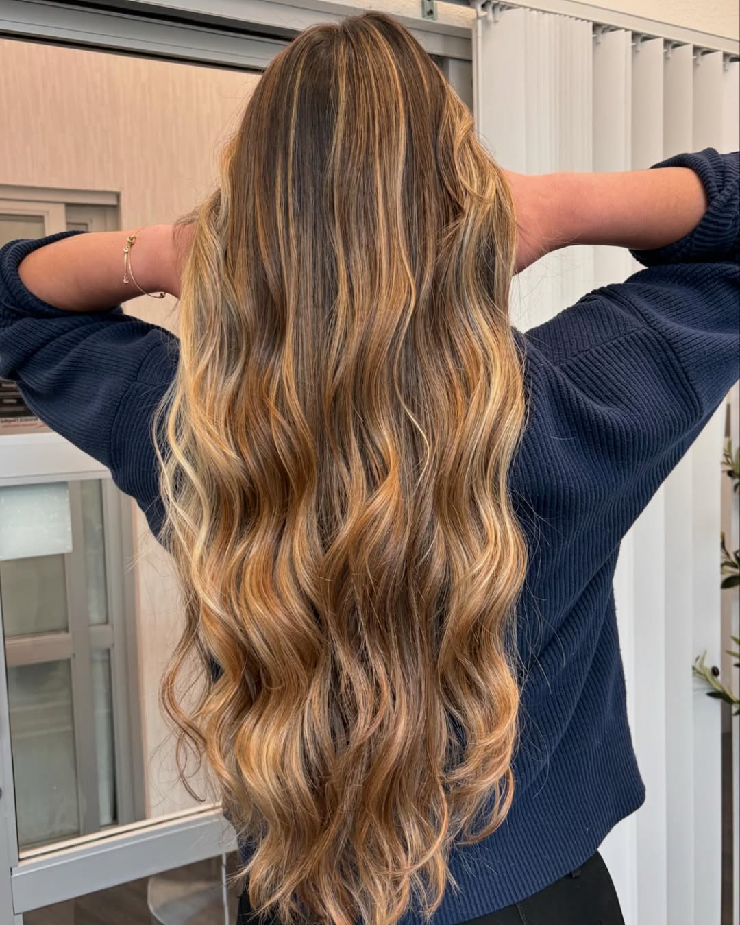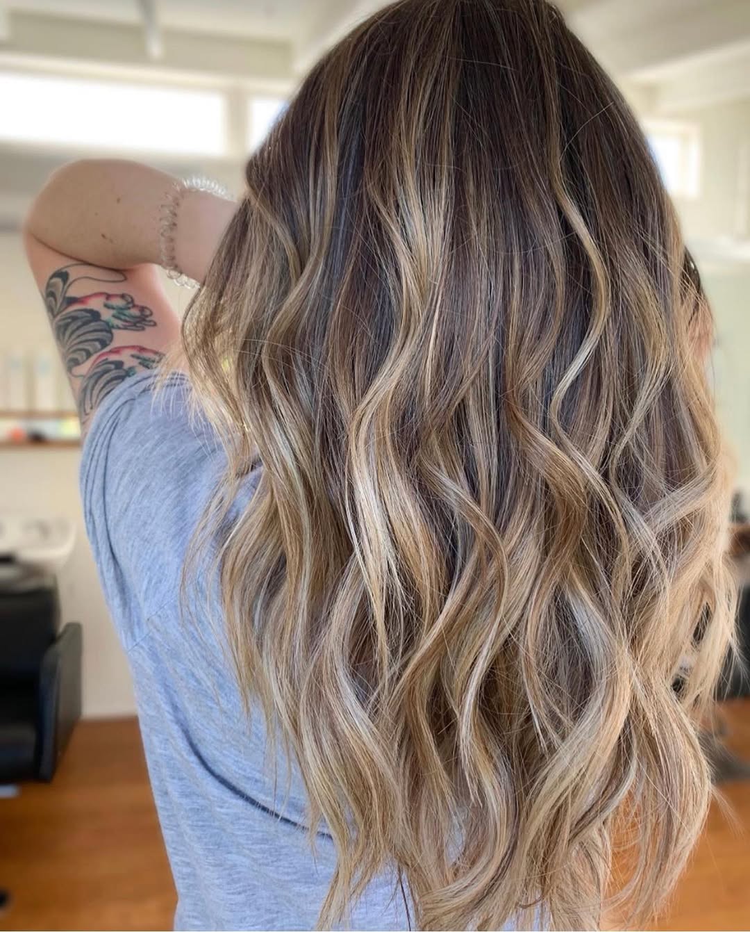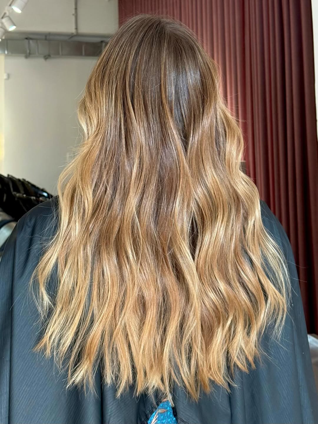 The tones shift subtly from root to tip, creating depth without harsh lines. The soft waves enhance the dimension, giving it that coveted “I just got back from vacation” glow.